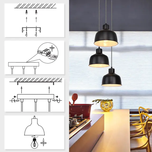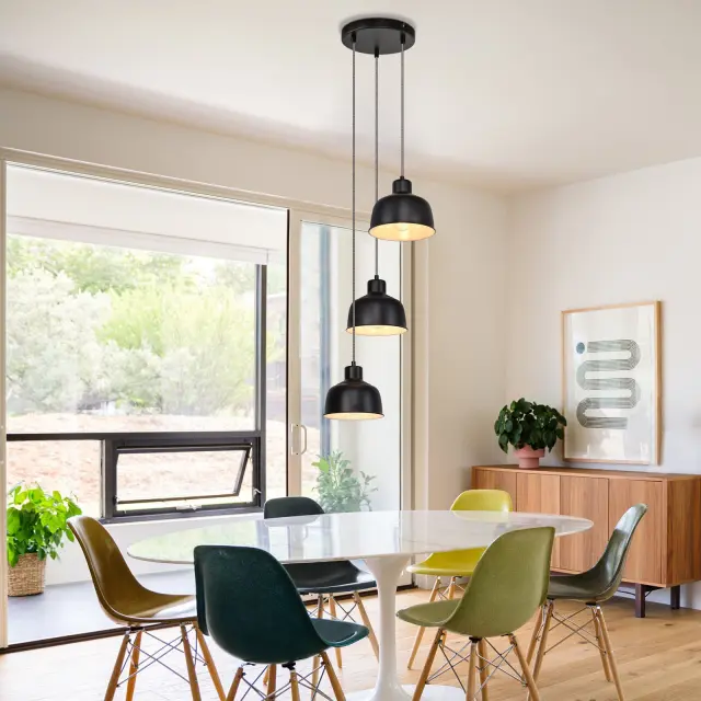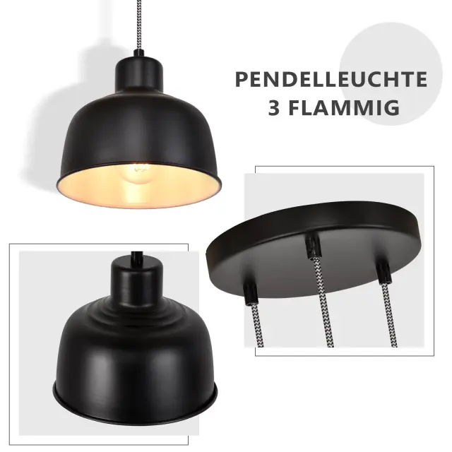 NETTLIFE Kovinska viseča svetilka Diam.17,8 cm E27 Črna Vintage Industrijska Retro Kuhinjska svetilka 3 žarnice