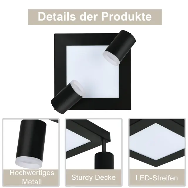 NETTLIFE Kvadratna stropna svetilka GU10 3000k Toplo bela 20W Nastavljiva svetilka za spalnico Toplo bela