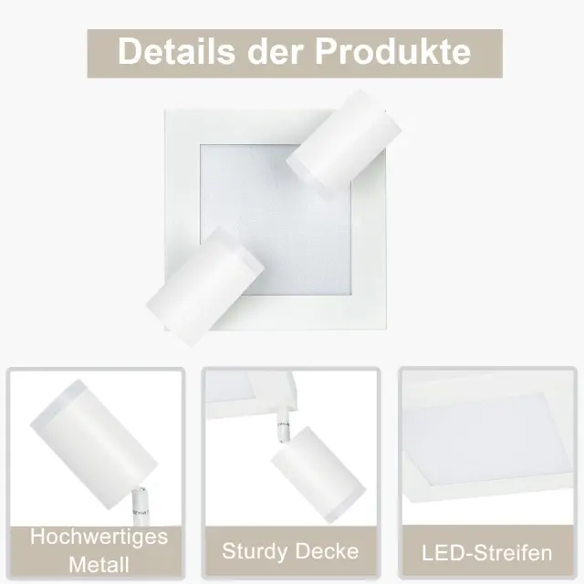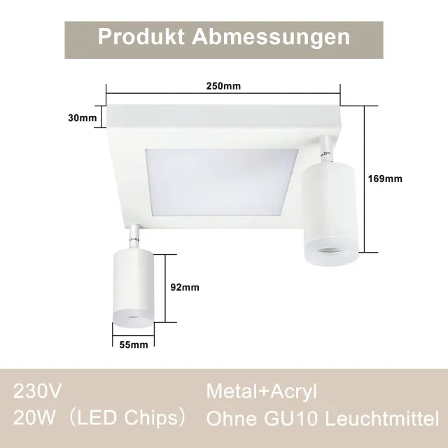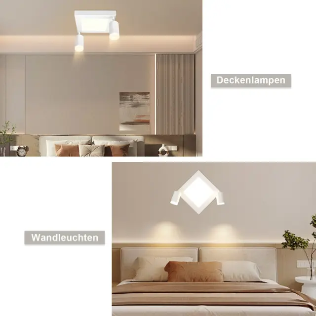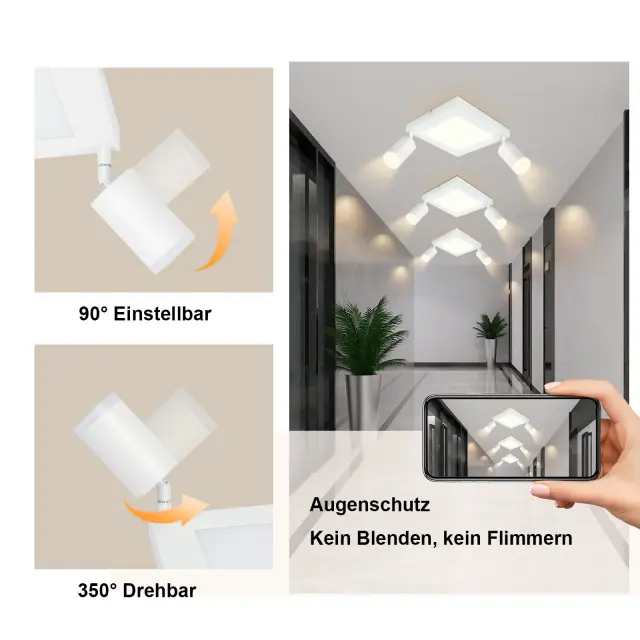 NETTLIFE Kvadratna stropna svetilka GU10 3000k Toplo bela 20W Nastavljiva svetilka za spalnico Toplo bela