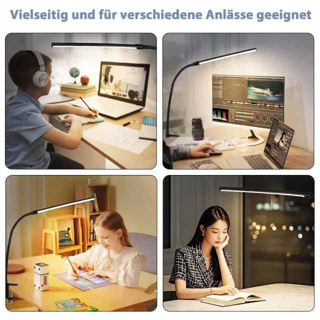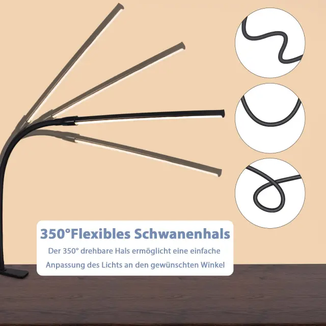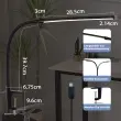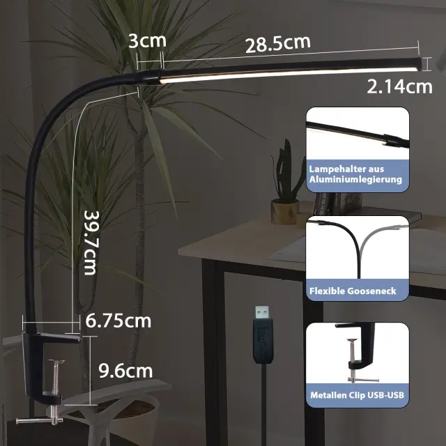NETTLIFE Lampe de bureau LED à pince noire 3 couleurs 5 niveaux de luminosité USB 5W lampe lumière du jour protection des yeux flexible