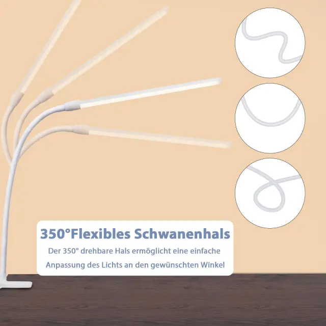 NETTLIFE Lampe de bureau LED à pince du jour blanche avec 3 températures de couleur 5 niveaux de luminosité USB flexible 5W