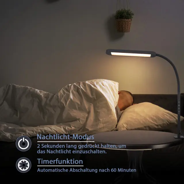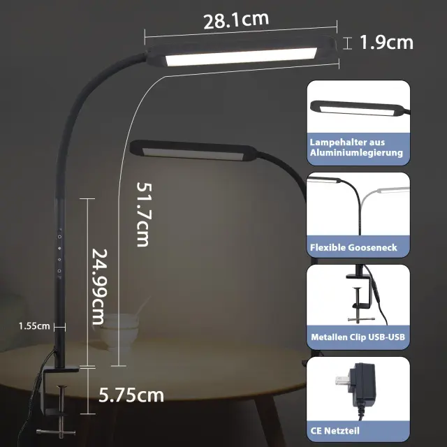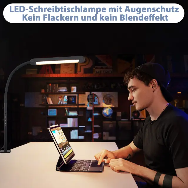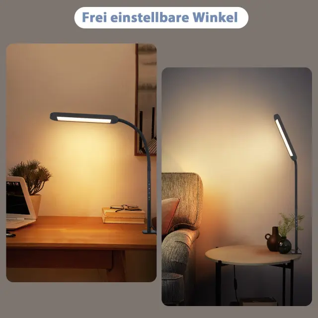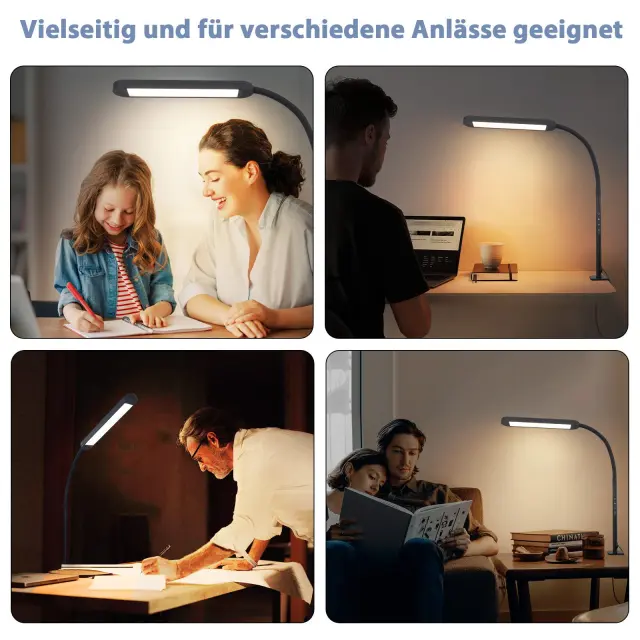 NETTLIFE Lampe de bureau LED à pince à intensité variable noire 5 couleurs et 5 niveaux de luminosité 11W Protection des yeux flexible