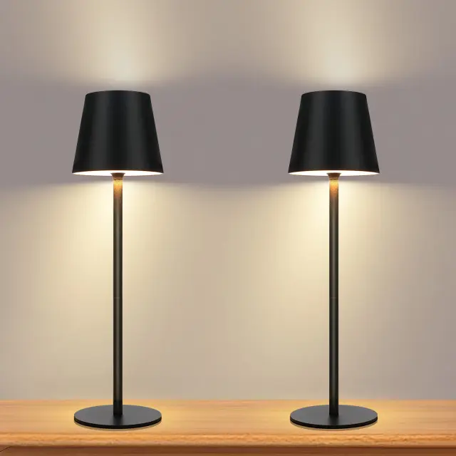 NETTLIFE Lampe de Chevet à Batterie sans Fil, Lot de 2 - LED 2600mhA Lampe de Table d'extérieur Rechargeable Tactile Lampe à Batterie Noire USB