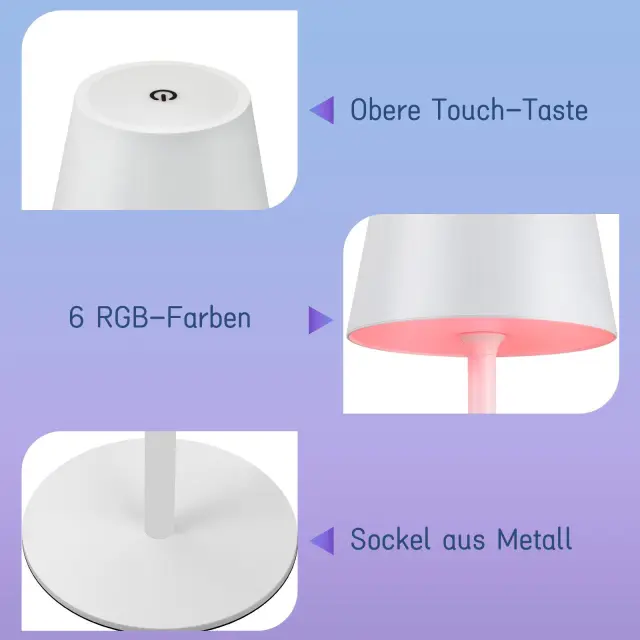 NETTLIFE Lampe de Chevet à Batterie sans Fil, Lot de 2- LED RGB 2600mhA Lampe de Table d'extérieur Rechargeable Tactile Dimmable Blanc USB