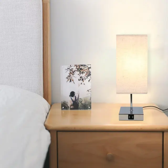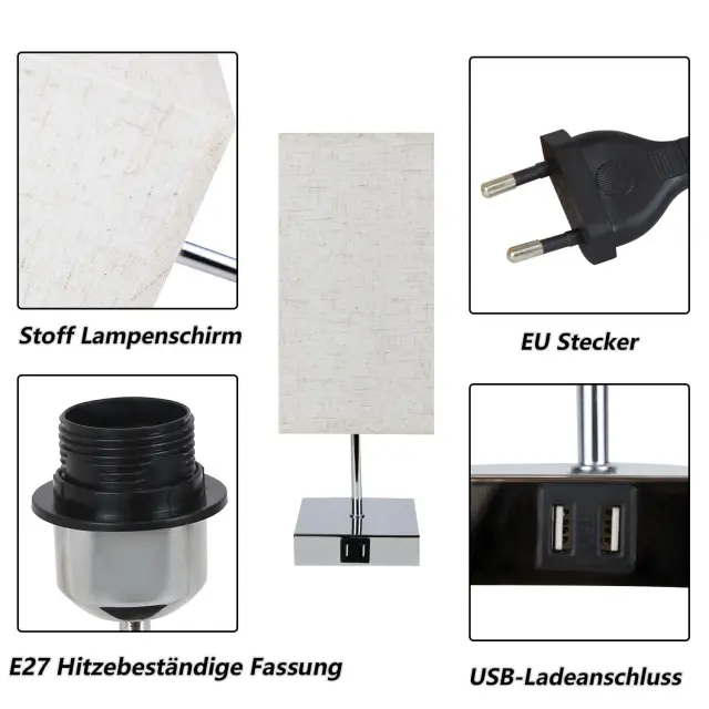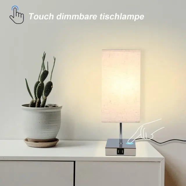 NETTLIFE Lampe de chevet tactile à intensité variable abat-jour en tissu vintage E27 avec fonction de chargement USB