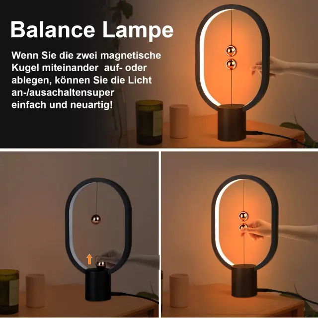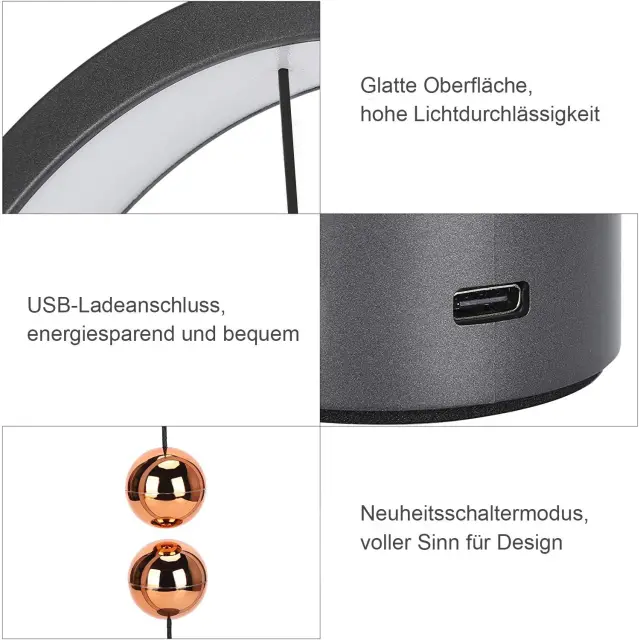 NETTLIFE Lampe de chevet LED noire Lampe de table : Lampe de table Petite lampe magnétique décorative avec USB