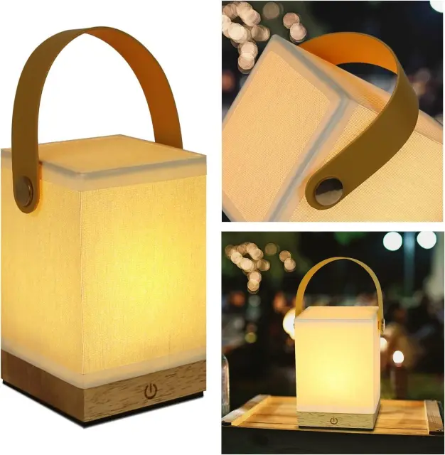 NETTLIFE Lampe de chevet Touch LED Lampe de table - Dimmable Cadeau avec USB Batterie rechargeable Moderne Lampe de chevet portable en tissu