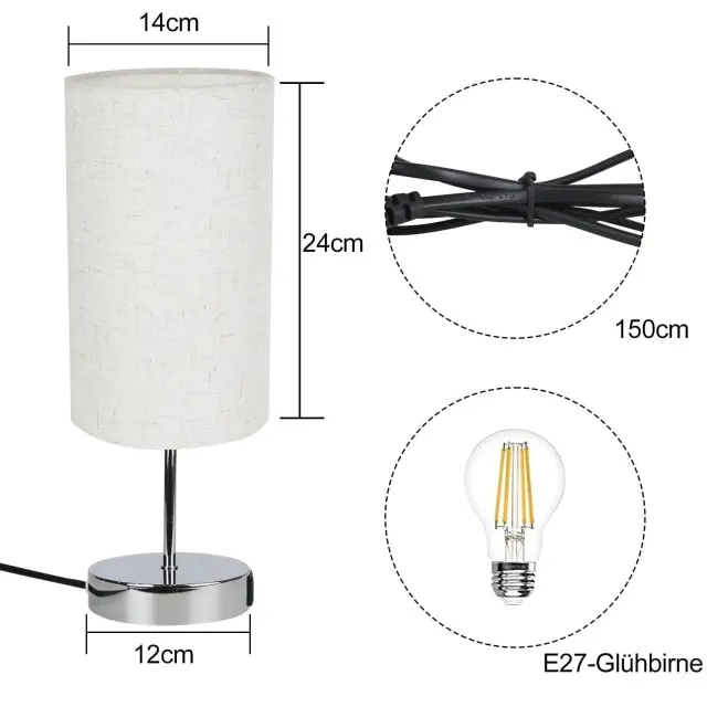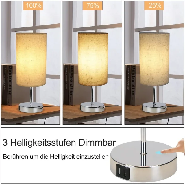 NETTLIFE Lampe de chevet tactile dimmable vintage E27 avec fonction de charge USB LED blanc chaud variable
