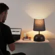 NETTLIFE Lampe de table de chevet lot de 2 avec câble noire petite tissu design moderne