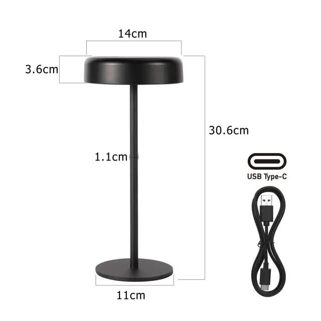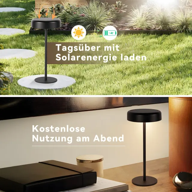 NETTLIFE Lampe de table LED solaire sans fil rechargeable tactile à intensité variable noire 3 600 mhA avec batterie USB