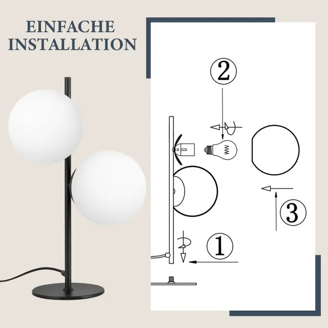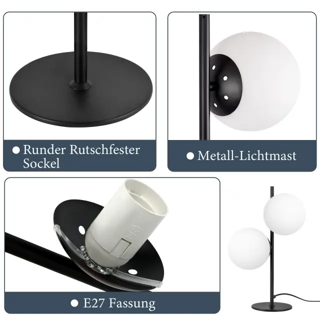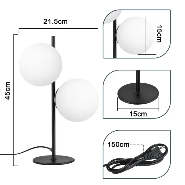 NETTLIFE Lampe de Table Lampe de Chevet Noire Salon E27 Design Moderne Verre Industriel Vintage Métal 2 Ampoules