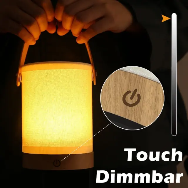 NETTLIFE Lampe de Table LED tactile, abat-jour Portable sans fil en tissu de bois avec fonction de gradation