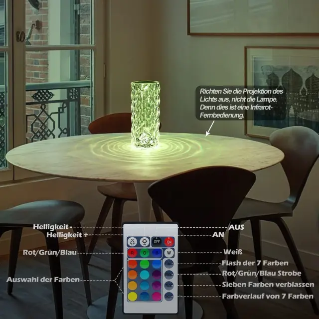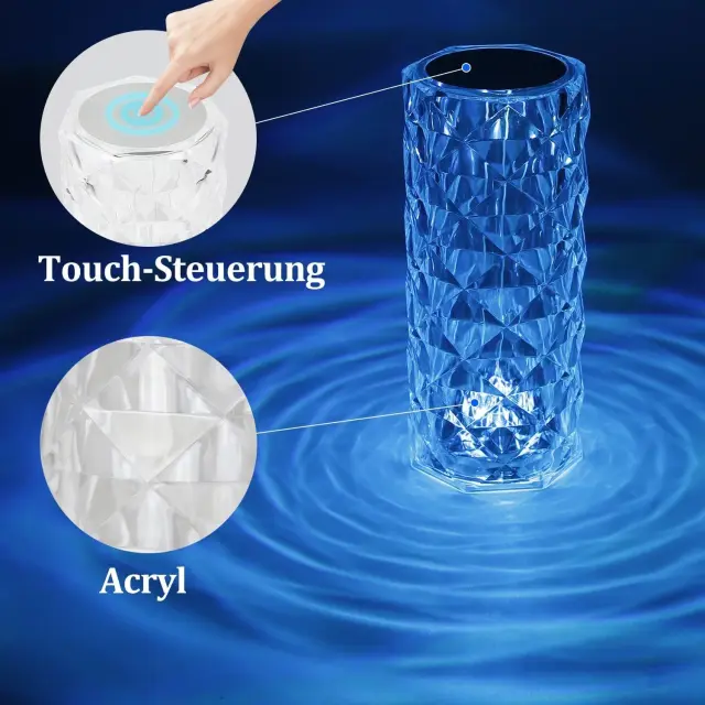 NETTLIFE Lampe de table LED de chevet sans fil - Cristal Variable Lampe de table Touch Rechargeable RGB Lamp Chambre RVB Télécommande 16 couleurs