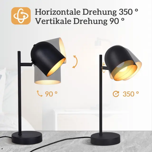 NETTLIFE Lampe de table lampe de chevet rétro vintage lampe de table salon industriel en or noir en métal E14 sans ampoule