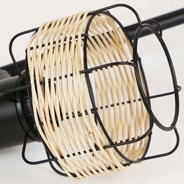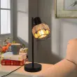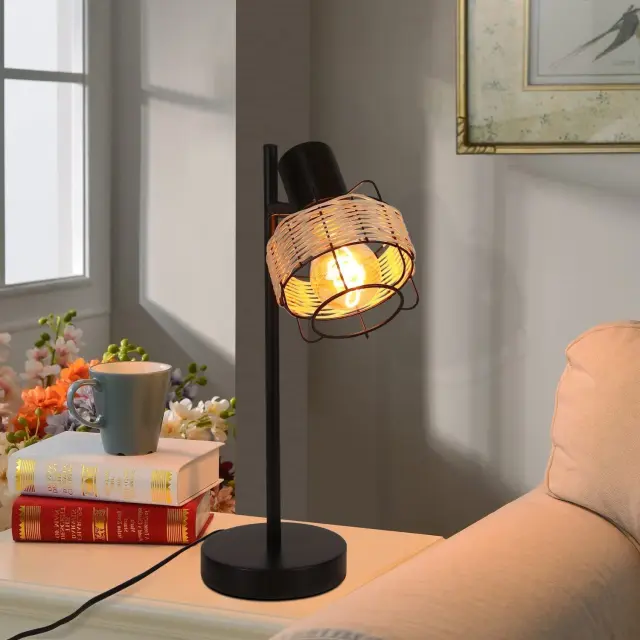 NETTLIFE lampe de table lampe de chevet vintage lampe rétro salon noir en rotin métal E27