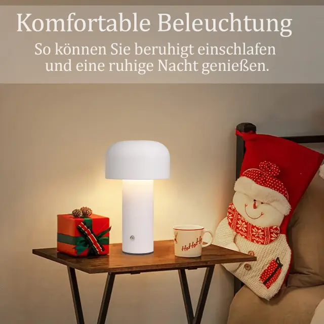 NETTLIFE Lampe de table LED sans fil à piles à intensité variable 2 W Lampe de chevet pour chambre à coucher Petite lampe champignon