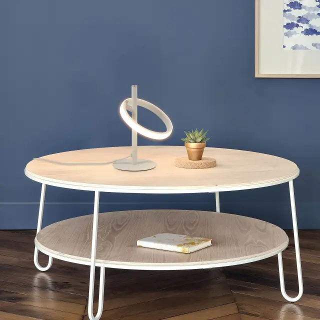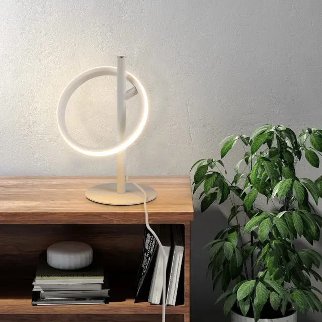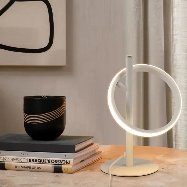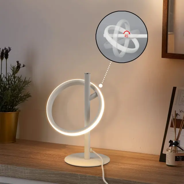 NETTLIFE Lampe de table Moderne LED de table - Blanc Anneau Forme Lampe de chevet Rotation Anneaux amovibles 13W 3000K Blanc chaud