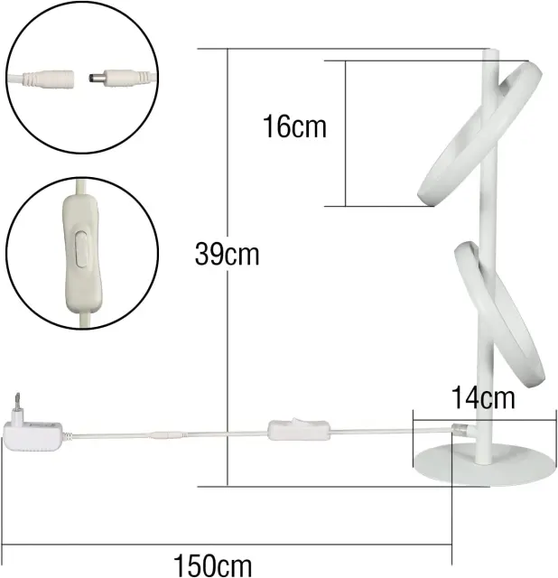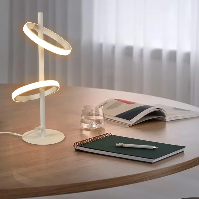 NETTLIFE Lampe de table, lampe de chevet LED moderne, anneau blanc, rotative, amovible, 13 W, 3 000 K
