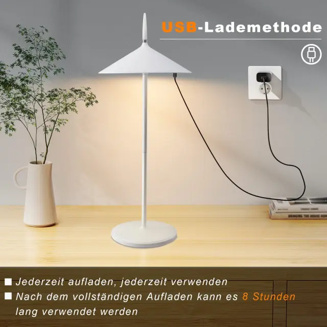 NETTLIFE Lampe de table à piles lampe de chevet LED, lot de 2 lampes de table sans fil 1800mhA, rechargeable, tactile, dimmable, moderne, blanc, IP44