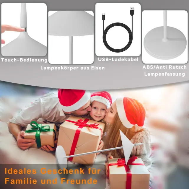 NETTLIFE Lampe de table à piles, lampe de chevet sans fil LED 1800mhA rechargeable tactile dimmable lampe de table d'extérieur moderne blanche IP44