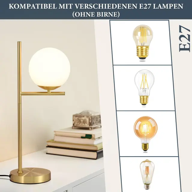 NETTLIFE lampe de table salon moderne de chevet - en verre blanc douille E27 industrielle avec interrupteur pour chambre bureau