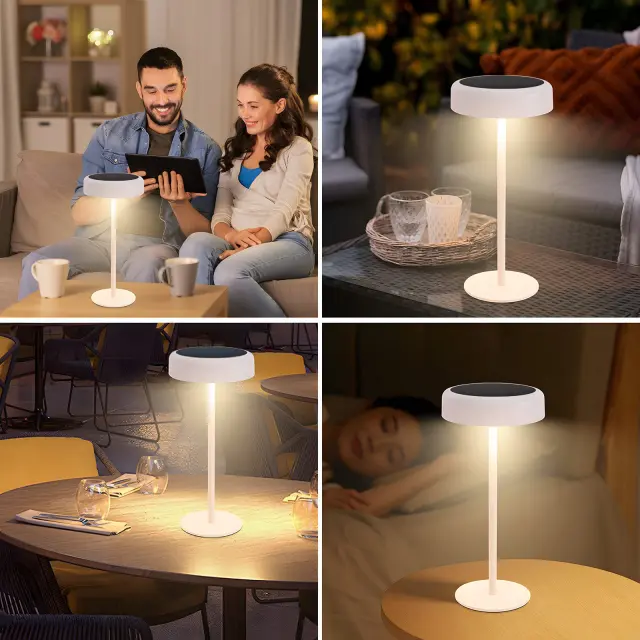 NETTLIFE Lampe de table solaire à batterie lampe de chevet LED sans fil 3600mhA rechargeable tactile dimmable blanche avec batterie USB