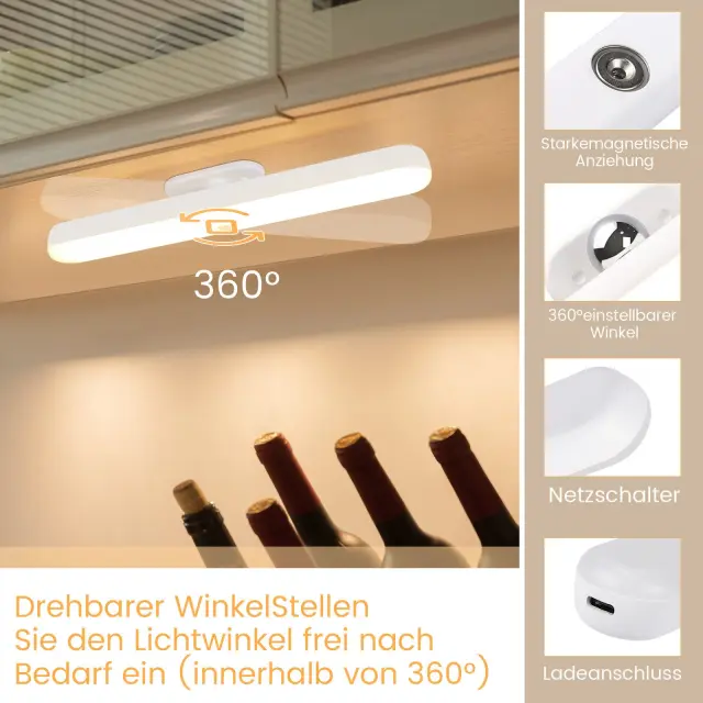 NETTLIFE LED kuhinjska luč za omaro s senzorjem gibanja - USB polnilna kuhinjska svetilka za omaro 24CM