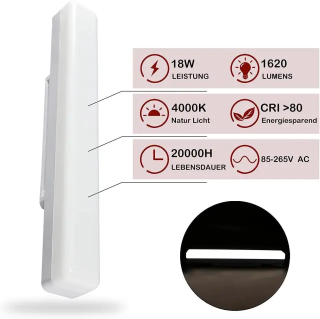 NETTLIFE LED kuhinjska stropna svetilka dolga 40 cm dnevna svetloba 18 W nevtralno bela stropna svetilka za klet, hodnik, pisarno, garažo, spalnico