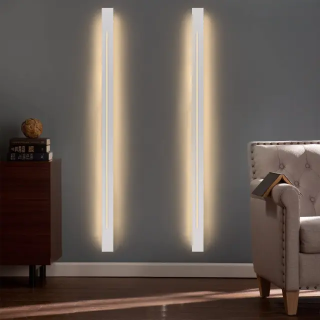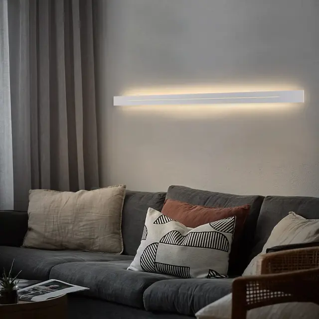 Moderen dizajn: Ta stenska svetilka ima tanko in preprosto zasnovo ter je oblikovalsko usmerjena in privlačna v celotnem bivalnem prostoru. V primerjavi z velikimi stenskimi svetilkami ravna stenska svetilka praktično ne zavzame prostora, niti v najbolj utesnjenih prostorih. Njen popolnoma strukturiran, sproščen bel videz se odlično zlije s sodobnim slogom pohištva.