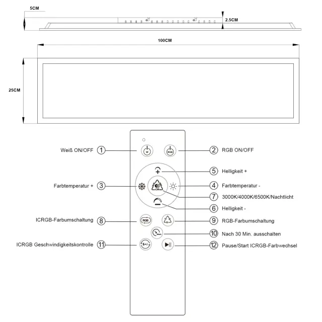 NETTLIFE LED panel 100 x 25 cm zatemnljiv, dolg, raven, barvno spreminjajoč se RGB osvetlitev z daljinskim upravljalnikom, 24 W