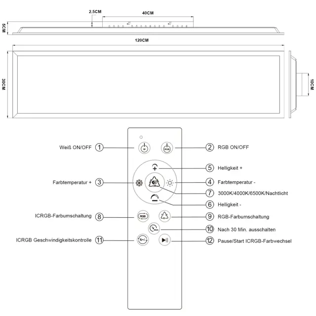 NETTLIFE LED panel 120 x 30 cm, zatemnljiva, ravna stropna svetilka, RGB spreminjanje barv, z daljinskim upravljalnikom, 36 W, 3000 K–6500 K