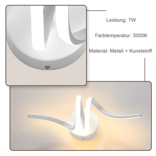 NETTLIFE LED stenska svetilka za notranjo uporabo, moderna bela 7W za stopnišče, topla bela 3000K