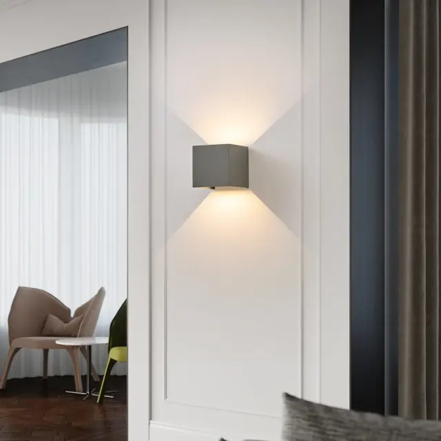 NETTLIFE LED stenska svetilka 5W - zunanja/notranja stenska svetilka siva, nastavljiv dvojni žarek, vodotesna IP65 230V 3000K