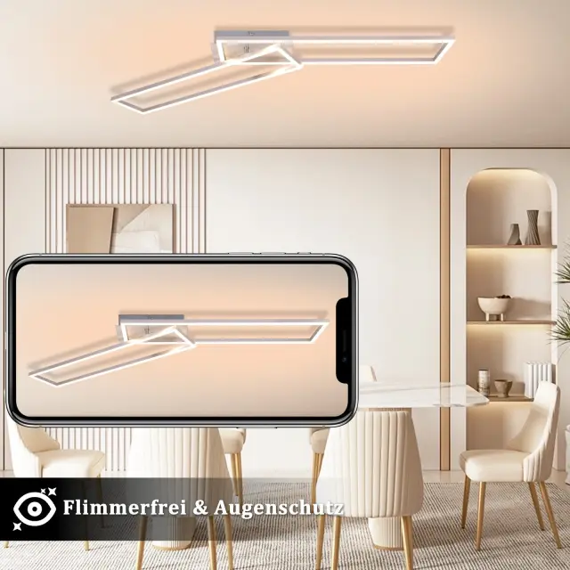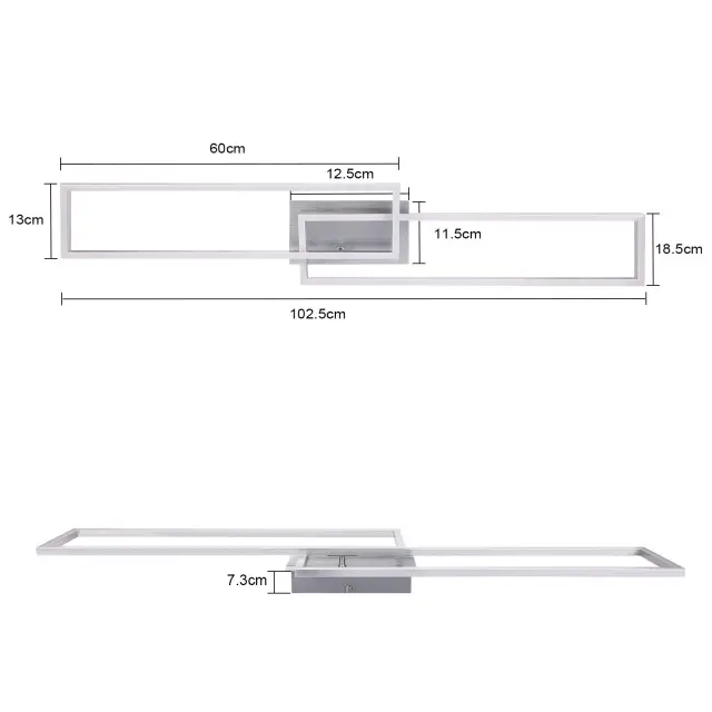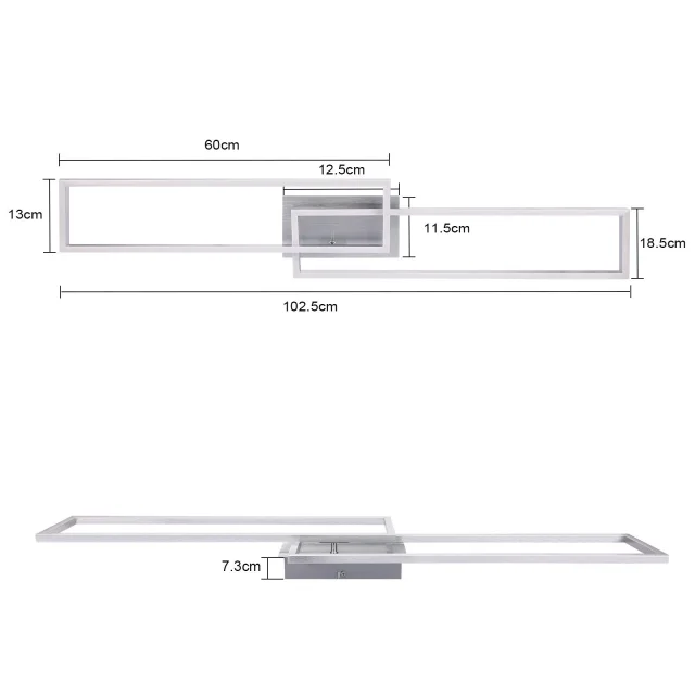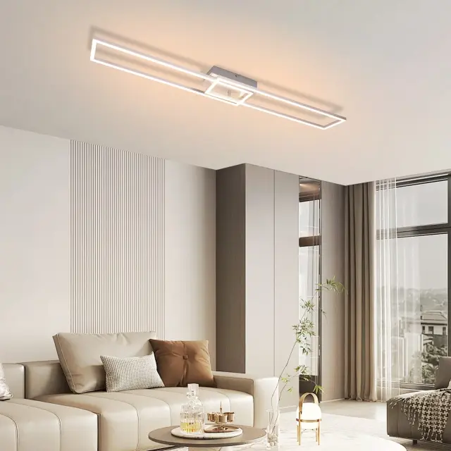 NETTLIFE LED stropna svetilka 102 cm, 2 okvirja, zatemnljiva, daljinski upravljalnik, srebrna 36 W, za spalnico