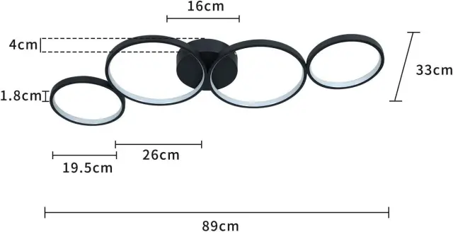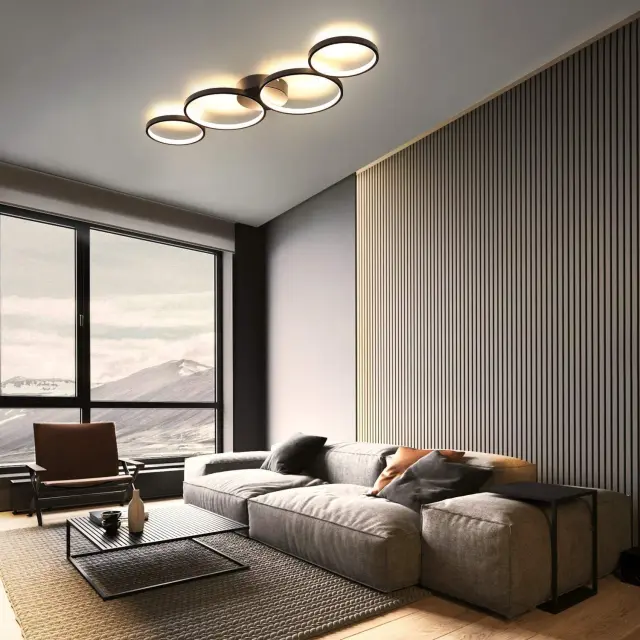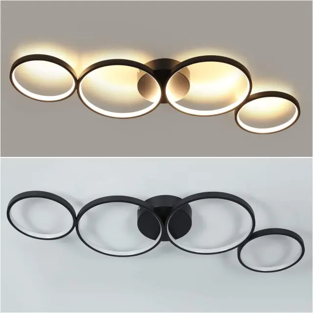 NETTLIFE LED stropna svetilka 37W 3000k toplo bela moderna okrogla obročasta črna 89cm dizajnerska namizna svetilka za dnevno sobo, hodnik, pisarno