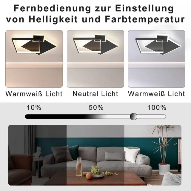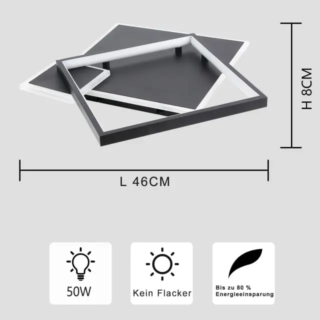 NETTLIFE LED stropna svetilka črne barve, zatemnljiva, 50 W, moderna oblikovalska svetilka