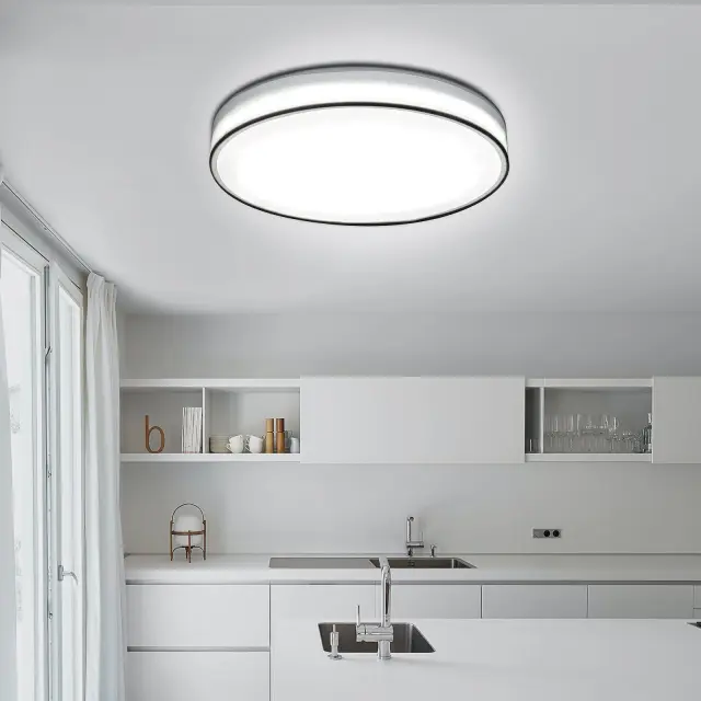 NETTLIFE LED stropna svetilka 38CM zatemnljiva z daljinskim upravljalnikom bela okrogla moderna tkaninska stropna svetilka