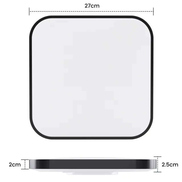 NETTLIFE LED stropna svetilka, ravna 27 cm, črna, toplo bela, 19 W, kvadratna, spalnica, kopalnica, IP44 za hodnik, kopalnico