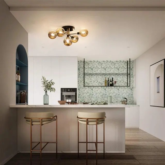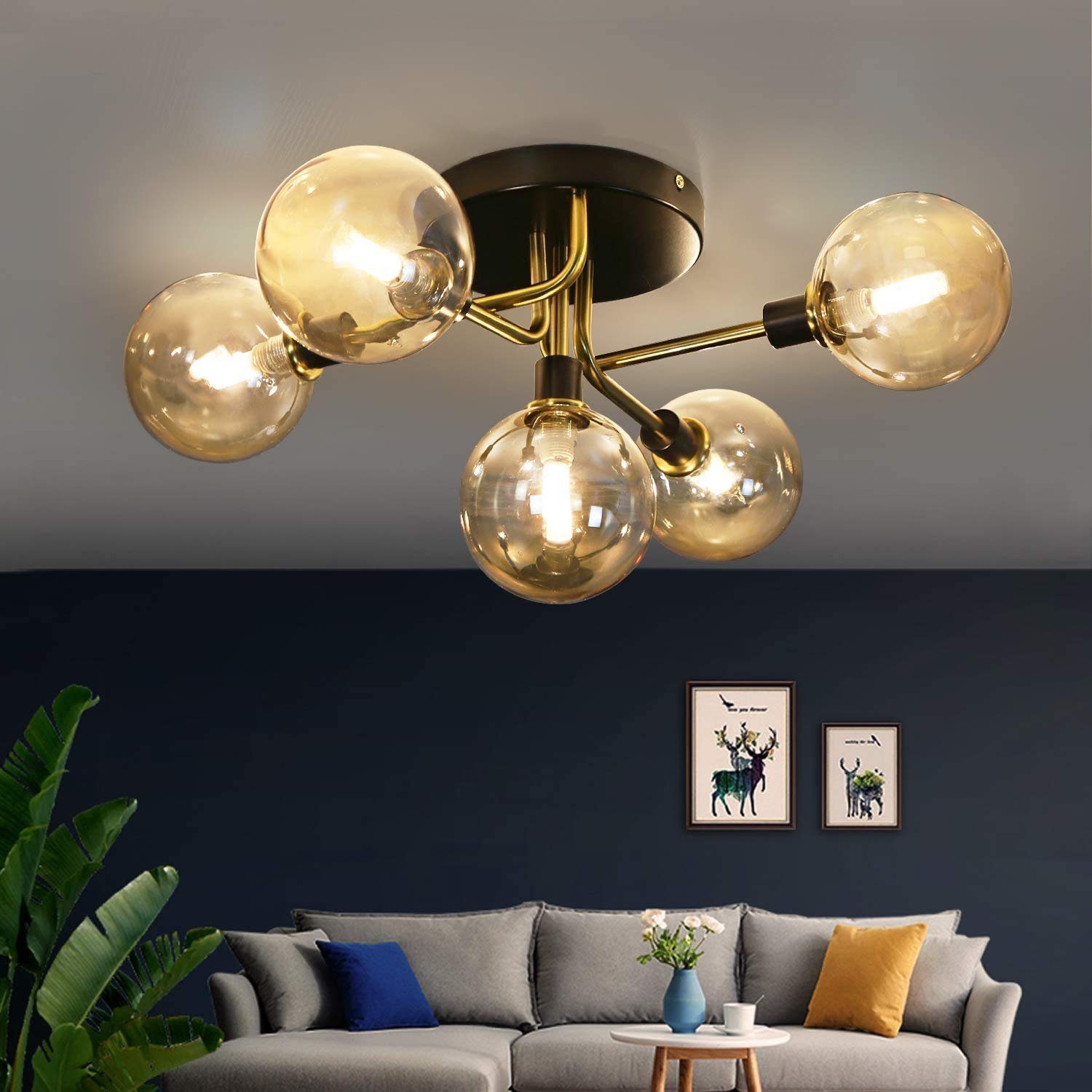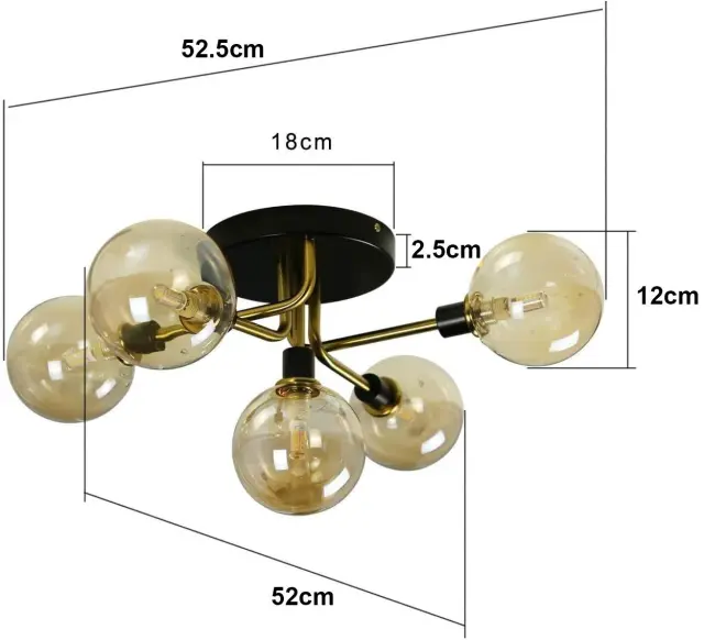 NETTLIFE LED stropna svetilka za dnevna soba/spalnica s 5 steklenimi krogličnimi žarnicami G9, dnevna soba/spalnica, notranja svetilka, lestenec