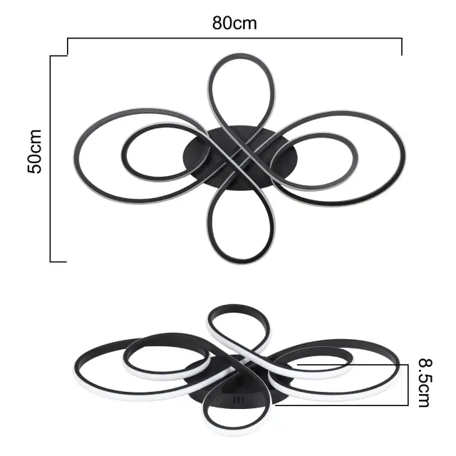 NETTLIFE LED stropna svetilka črne barve, zatemnljiva 80 cm, dnevna soba, 78 W, moderna z daljinskim upravljalnikom, idealna