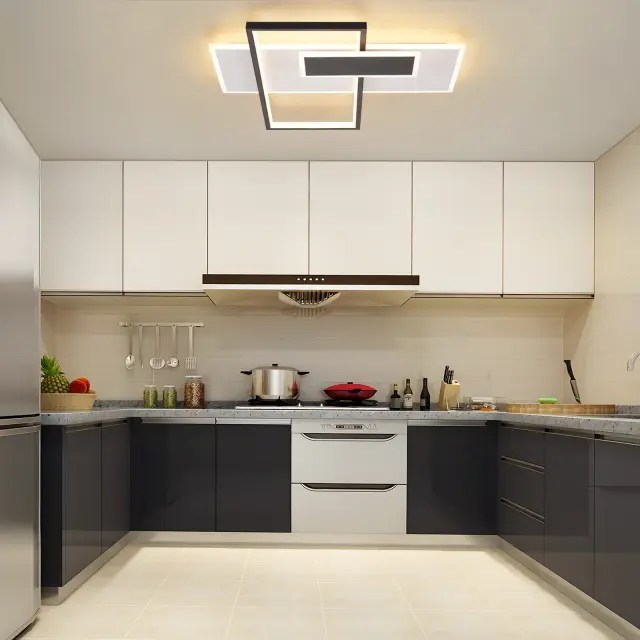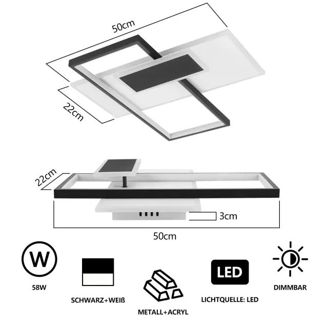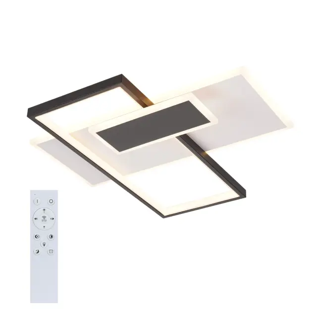 NETTLIFE LED stropna svetilka 62W z 2 reflektorjema, črna, daljinski upravljalnik, moderna akrilna oblika za dnevno sobo
