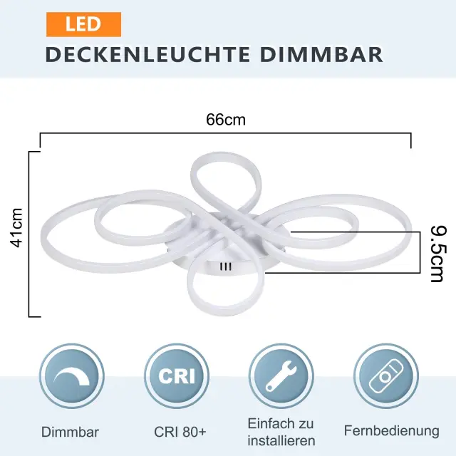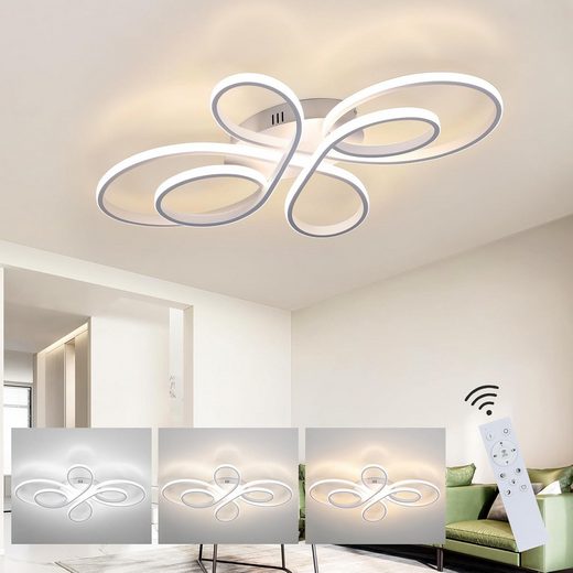 NETTLIFE LED stropna svetilka, zatemnljiva 66 cm, moderna bela 65 W, spalnica, z daljinskim upravljalnikom, velika