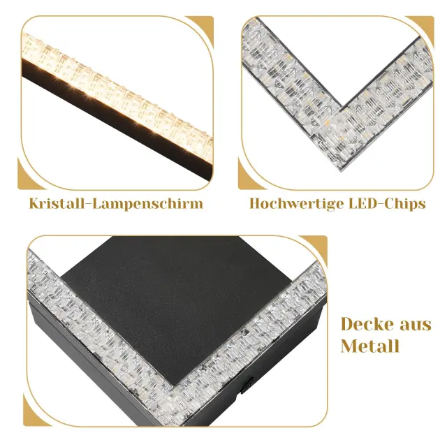 NETTLIFE LED stropna svetilka 12W toplo bela kristalna svetilka 3000K svetloba črna moderna kvadratna kovinska svetilka za dnevno sobo