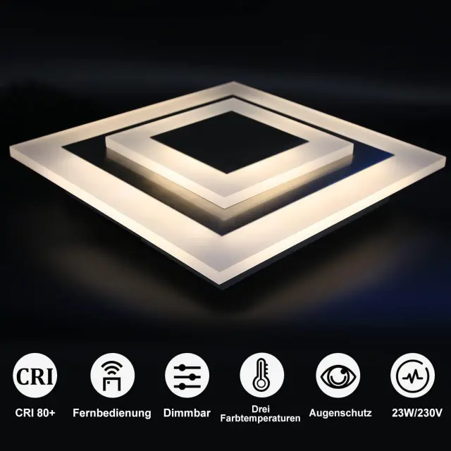 NETTLIFE LED stropna svetilka: 30 cm svetilka za dnevno sobo, 23 W zatemnljiva kuhinjska svetilka, moderna svetilka z daljinskim upravljalnikom