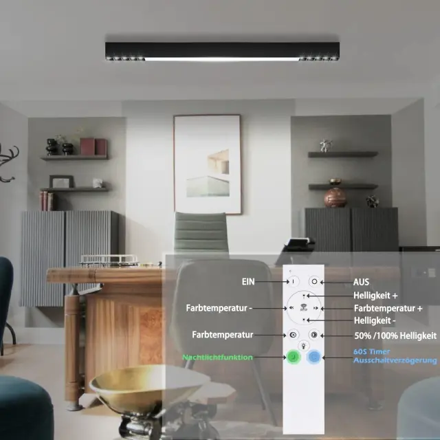 NETTLIFE LED stropna svetilka črne barve, 32 W, dolga, moderna, zatemnljiva, z daljinskim upravljalnikom, 107 cm