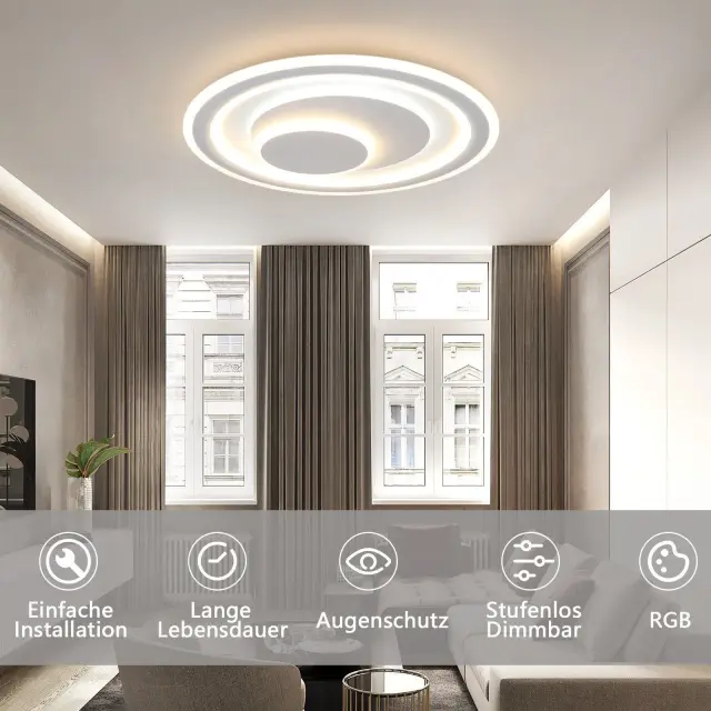 NETTLIFE LED stropna svetilka za dnevno sobo, zatemnljiva z daljinskim upravljalnikom, RGB vrtna svetilka, bela okrogla, 50 cm, RGB