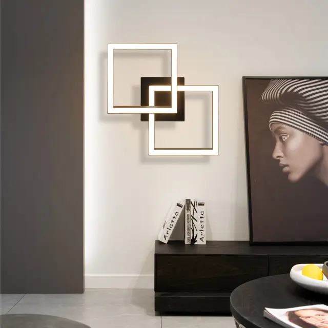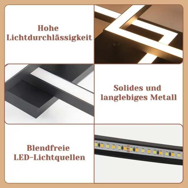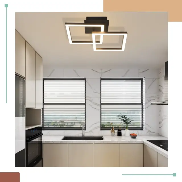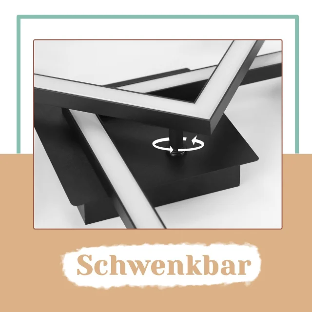 NETTLIFE LED stropna svetilka 24W črne barve, moderna oblika, toplo bela, kvadratna, za dnevno sobo, spalnico, kuhinjo, hodnik