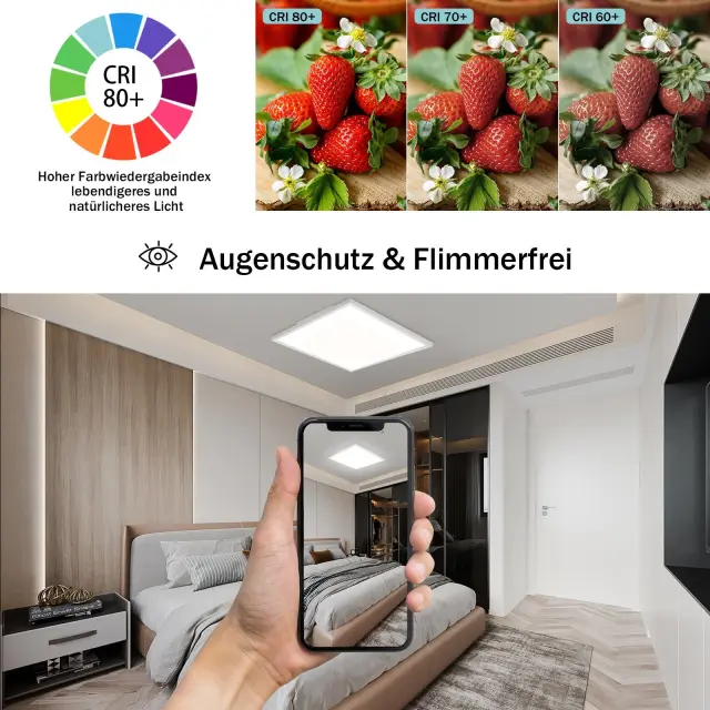 NETTLIFE LED stropna svetilka z zatemnilno barvo 24W bela z daljinskim upravljalnikom, kvadratna 45cm za dnevno sobo, spalnico, kuhinjo, otroško sobo