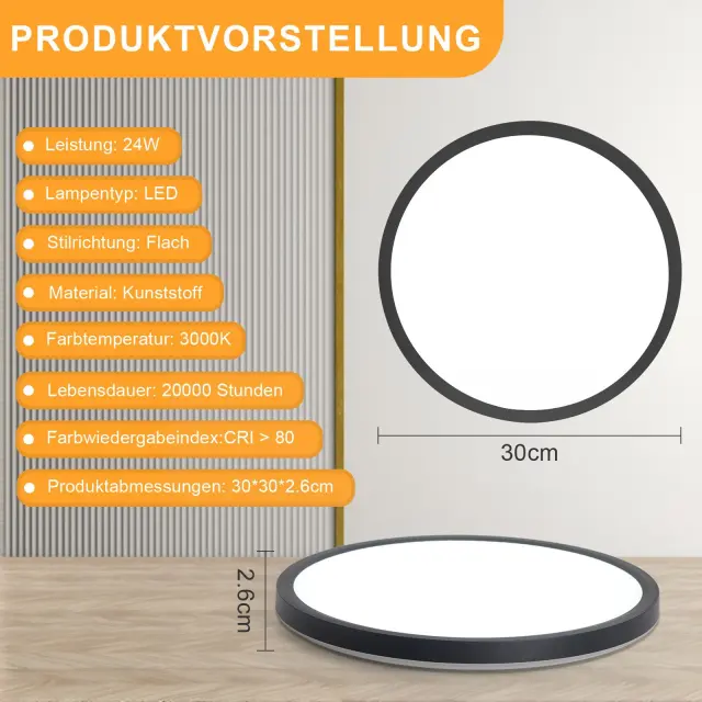 NETTLIFE LED stropna svetilka za kopalnico, ravna, 30 cm, 24 W, okrogla, bela, kuhinjska, nezatemnljiva