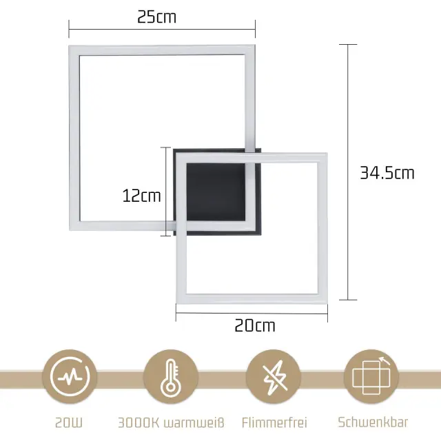 NETTLIFE LED stropna svetilka za dnevno sobo - 20W toplo bela svetilka za dnevno sobo, moderna svetilka za spalnico, črna